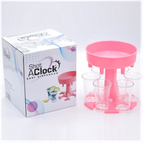 - (1) Pink Shotaclock Dispenser w/ (6) Clear Cups